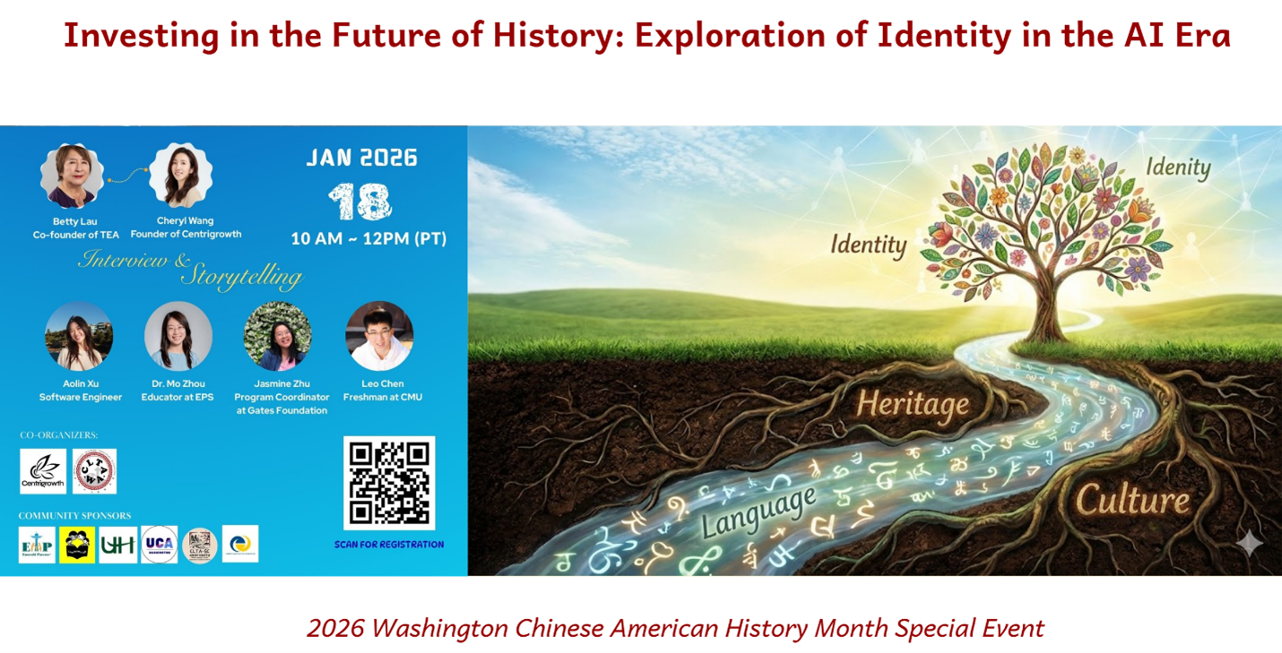 2023 年,华盛顿州正式签署 SB5000 法案,将每年一月设立为“美华历史月”,以纪念、教育并提升公众对华裔美国人在州历史中所作贡献与所遭遇挑战的认识。该法案也鼓励学校开展相关教育活动,促进尊重、理解与历史传承。延续前两年由向心力教育联合多方组织推动的美华历史与身份认同探索交流活动,2026 年 1 月 18 日上午,一场聚焦共同学习美华历史、直面当下挑战、展望未来机遇的线上分享与头脑风暴顺利举行,为第三年的美华历史月注入了新的时代意义。