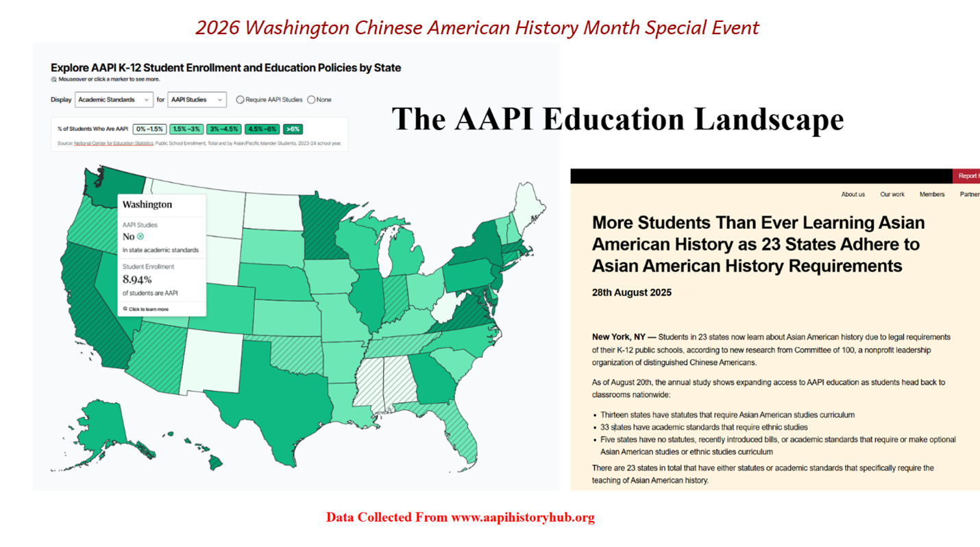 In 2023, Washington State officially passed SB5000, establishing January as Americans of Chinese Descent Month to commemorate, educate, and raise public awareness about the contributions and experiences of Chinese Americans in the state. The bill also encourages schools to conduct related educational activities to promote respect, understanding, and historical continuity. Building on two years of community-driven programs exploring Chinese American history and identity, an online event was held on January 18, 2026. Centered on understanding Chinese American history, confronting present-day challenges, and envisioning future opportunities, the event brought renewed contemporary significance to the third year of this statewide initiative.