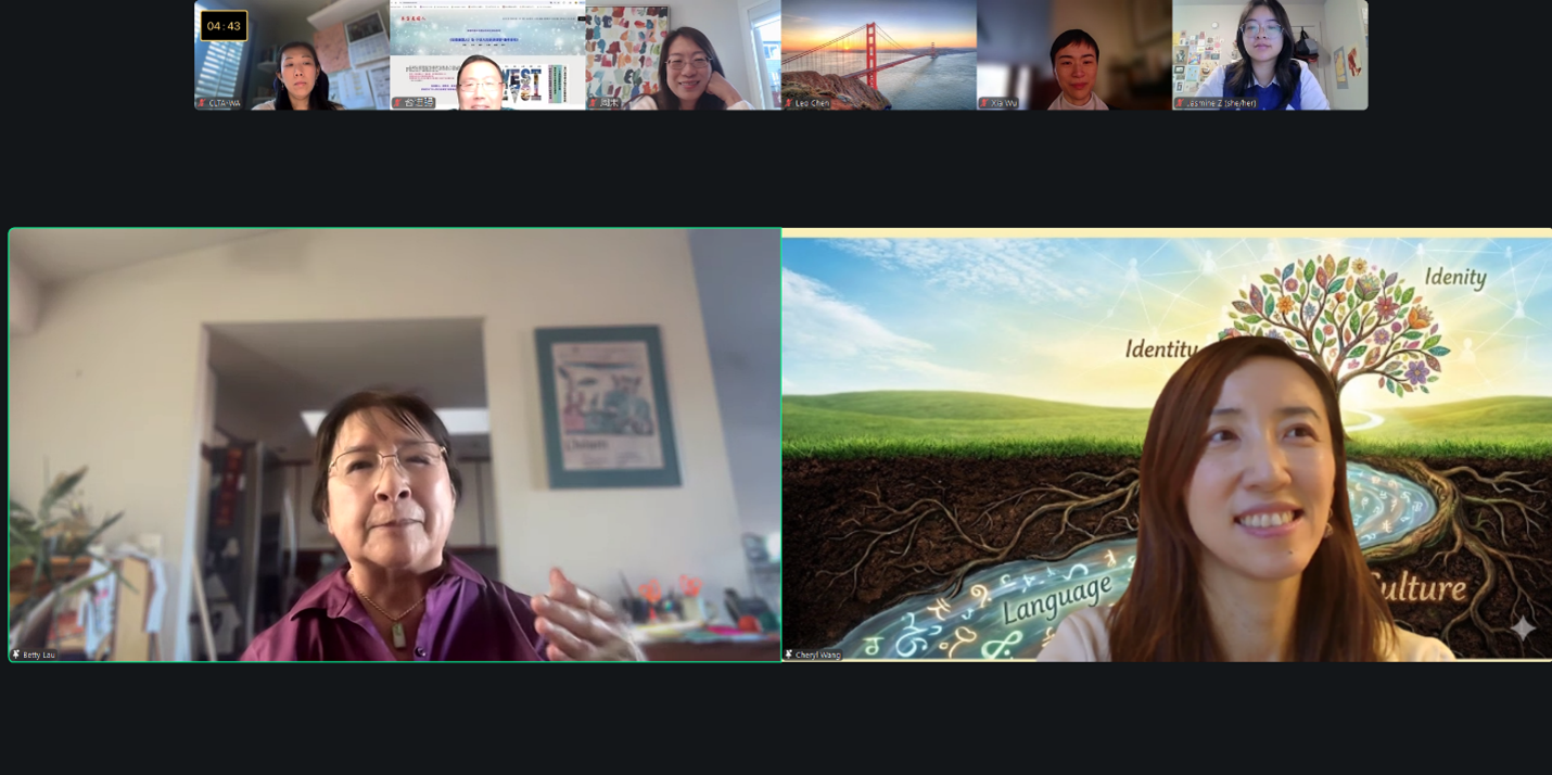 The event was co-organized by Cheryl Wang, founder of the Centrigrowth Culture Ambassador Lab, together with the Chinese Language Teachers Association in Washington State (CLTA-WA) , and supported by organizations across multiple states and sectors. In her opening remarks, Cheryl introduced the origins of Chinese American History Month, the advocates behind the legislation, and recent approving progress of the related bills, such as SB 5574 & SB 5134, etc. She then invited representatives from three generations of Chinese Americans to engage in a deep dialogue. The speakers—ranging from veteran educator Betty Lau, a long‑time advocate for Chinese American rights and Chinese language and cultural education, to a former tech industry leader turned educator Mo Zhou, to young leaders Jasmine Zhu, Aolin Xu, and Leo Chen—embodied the power of intergenerational continuity and collective progress.